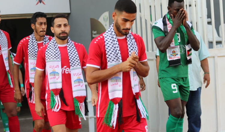 ​​​بمبادرة لافتة من الاتحاد اللبناني لكرة القدم وبالتنسق مع الأندية، وعلى أرضية ملعب مجمّع فؤاد شهاب في جونية دخل لاعبي فريقي التضامن - صور والأنصار - بيروت. وزينت صدورهم الكوفية الفلسطينية تعبيراً