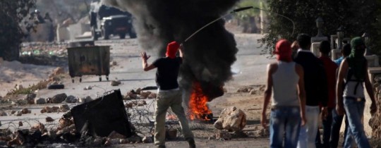 ألقى الشبان اليوم الجمعة في مواجهات مخيم عايدة كوع محلي الصنع على البرج العسكري المحيط بقبر راحيل شمال بيت لحم.