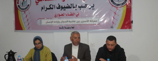 نظّم ملتقى الفكر التقدّمي في محافظة خانيونس، أمس الثلاثاء، لقاءً سياسيًّا بعنوان "معركة الأسرى بين فاشيّة السجّان وإرادة الإنسان"، حيث استضاف اللقاءُ رئيس وحدة الدراسات والتوثيق في هيئة شؤون الأسرى وا