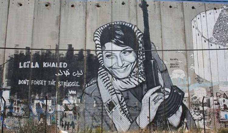 ليلى خالد ناشطة ثورية فلسطينية شهيرة. لها جدارية شهيرة (في الصورة) تزين جدار الفصل العنصري الإسرائيلي الذي يعزل الضفة الغربية في فلسطين. وهي عضو في اللجنة المركزية للجبهة الشعبية لتحرير