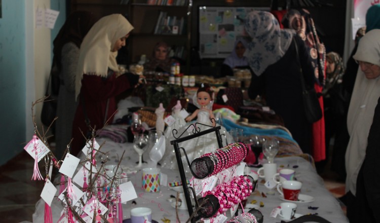 مطرزاتٌ ومأكولاتٌ وحُليّ.. تُزيّن طاولات معرضٍ أقيمَ في قاعة المعهد الفلسطيني للتنمية، غرب مدينة غزة، على مدار أيامٍ ثلاثة. مُنتجاتٌ صنعتها نساءٌ، لكنّ ثمّة أشياء أخرى لم تُعرض على الطاولات التي امتدّت لثلاثة أمتا