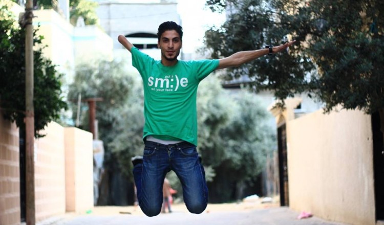 بروحٍ تُعانق أعلى الغيم، محاطةٌ بهالة من إيمانِ ورضا، بحجم الكون، يمضي وليد في دربه، لا يُبصر إلّا للأمام، غير آبهٍ بمن يعترض حلمه أو يعكّر صفو فرحه بكلمة أو نظرة. وليد طافش، 24 عاماً، من سكان معسكر جباليا، شمال قطاع غزة،