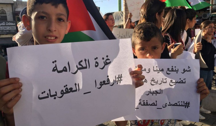خرج عشرات الفلسطينيين، مساء اليوم الأربعاء، على دوار جمال عبد الناصر وسط طولكرم في الضفة المحتلة، للمطالبة برفع العقوبات التي يفرضها الرئيس محمود عباس والحكومة على قطاع غزة منذ أكثر من عام.