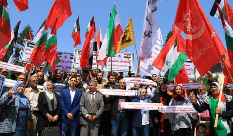 نظمت لجنة المتابعة للقوى الوطنية والإسلامية في قطاع غزة صباح اليوم الأحد بساحة الجندي المجهول وقفة تضامنية مع الجمهورية العربية السورية تنديداً بالعدوان الثلاثي الأمريكي الفرنسي البريطاني عليها.