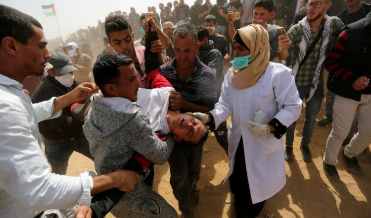 أفادت وزارة الصحة الفلسطينية بأن استهداف الاحتلال الصهيوني للمتظاهرين شرق قطاع غزة، الجمعة، أسفر عن استشهاد مواطن وإصابة أكثر من 969 آخرين، بينهم 67 طفلًا و20 سيدة. وأشارت إلى أنّ الشهيد هو الشاب إسلام حرز الله، مُوضحةً أن 15 حالة من مُجمل الإصابات لا تز