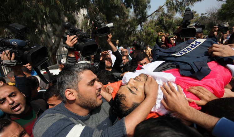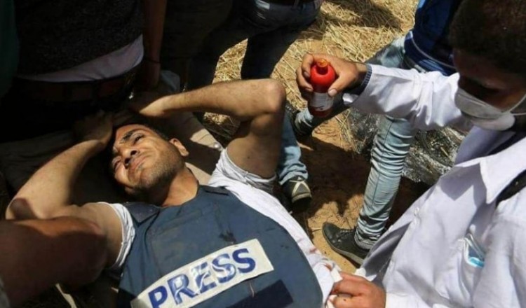 شارك عشرات الصحفيين والصحفيات في مدينة رام الله، في اعتصام احتجاجي، ضد استمرار جرائم الاحتلال الصهيوني بحقهم، والتي كان آخرها جريمة اغتيال الصحفي ياسر مرتجى خلال قيامه بعمله الإعلامي في تغطية مسيرة العودة على حدود