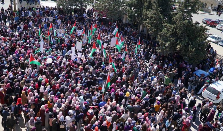 نظّم آلاف من طلبة وموظفي جامعة بيرزيت، في محافظة رام الله، اعتصامًا اليوم السبت، وذلك احتجاجًا على اقتحام قوات خاصة من المستعربين الصهاينة لحرم الجامعة عصر الأربعاء، واعتقال رئيس مجلس الطلاب عمر الكسواني.