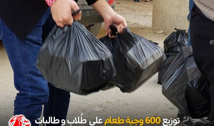 وزّعت جبهة العمل الطلابي التقدمية في جامعة النجاح، أمس الثلاثاء، وجبات غذائية جاهزة لطلاب وطالبات السكنات، في منطقة السكنات بالحرم الجديد للجامعة، وبلغ عدد الوجبات التي تم توزيعها نحو 600 وجبة.