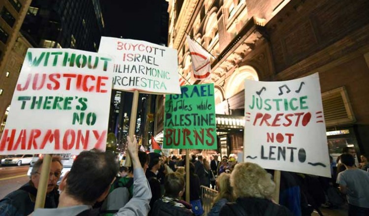 شهدت مدينة نيويورك الأمريكية، أمس الأربعاء، تظاهرة احتجاجية رافضة لوجود فرقة الأوركسترا الفيلارمونية "الإسرائيلية"، في المدينة. ونظم الوقفة العشرات من الم