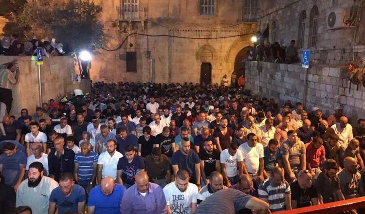 أدى مئات المواطنين، صلاة الفجر، اليوم الجمعة، أمام منطقة باب الأسباط استمراراً للاحتجاج على تركيب الاحتلال الصهيوني بواباتٍ الكترونية أمام بوابات ومداخل المسجد الأقصى المُبارك.