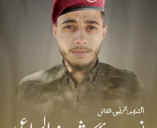 نعت كتائب الشهيد أبو علي مصطفى الجناح العسكري للجبهة الشعبية لتحرير فلسطين رفيقها المقاتل الشهيد البطل "إبراهيم عبد الله مرجان / أبو صقر" أحد أبطال وحدة الدروع - لواء الشّمال في كتائب الشهيد أبو علي