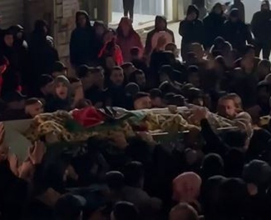 شيّعت جماهير شعبنا في مدينة جنين، ظهر اليوم السبت، الشهيد عبد الله سميح أحمد قلالوة "26 عامًا"، الذي استُشهد برصاص قوات الاحتلال الصهيوني، أمس، بالقرب من حاجز حوارة جنوب نابلس، إلى مثواه الأخير في مقب