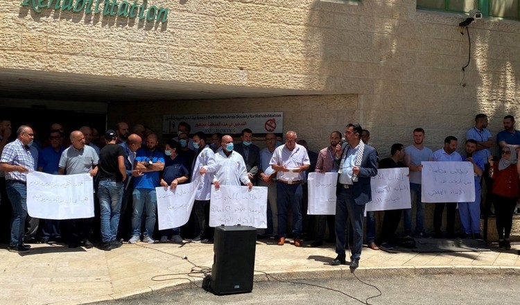 نظم العاملون في مستشفى الجمعية العربية بمدينة بيت جالا، اليوم الأربعاء، وقفة احتجاجية تنديدًا بالاعتداء على حرم المستشفى في اعقاب تسجيل وفاة بشهبة خطأ طبي، إذ قامت عائلة الفقيد باقتحام المستشفى وتحطي